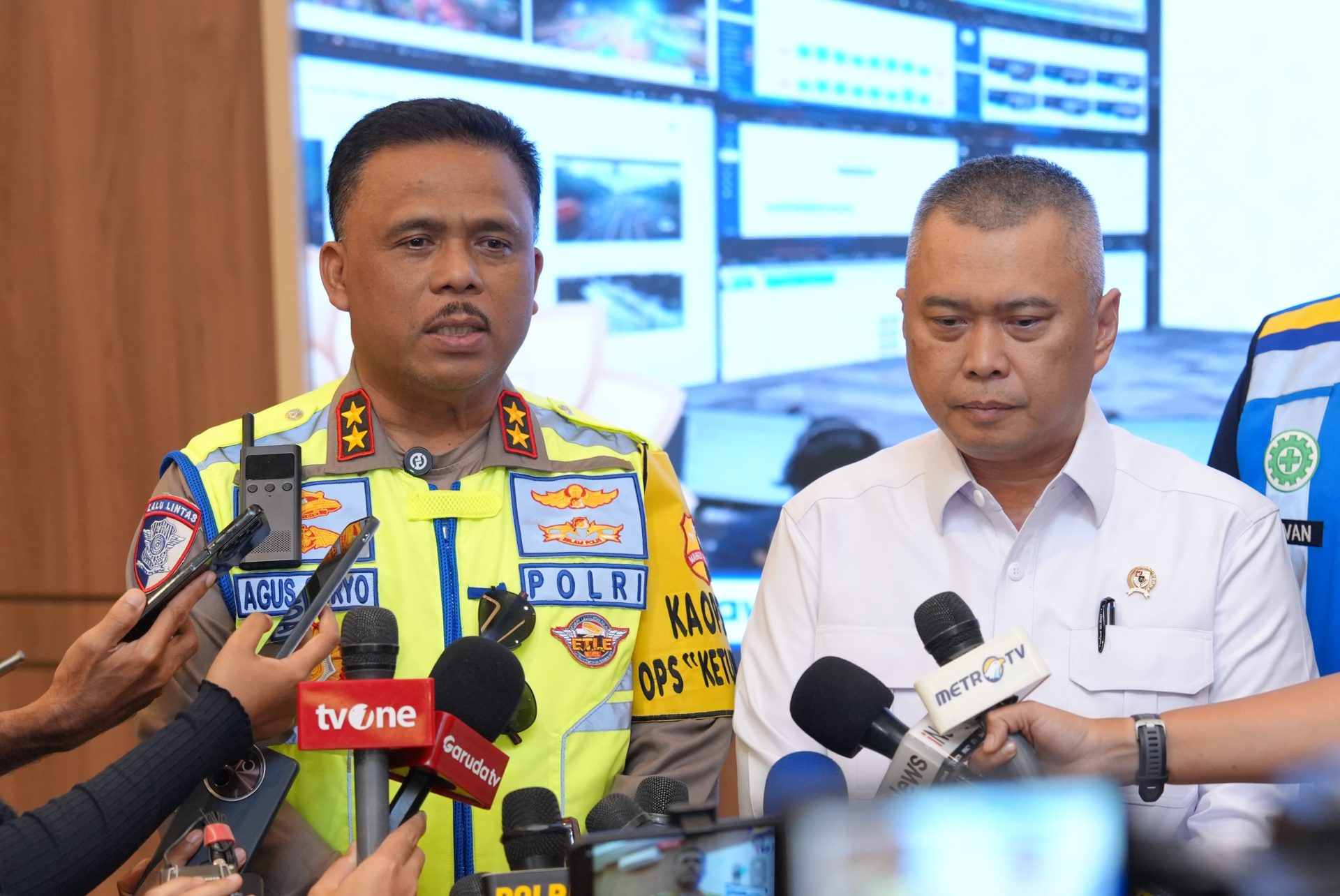 Kepala Korps Lalu Lintas (Kakorlantas) Polri Irjen Agus Suryonugroho bersama Menteri Perhubungan (Menhub) Dudy Purwagandhi melakukan peninjauan langsung ke Jasa Marga Toll Road Command Center...